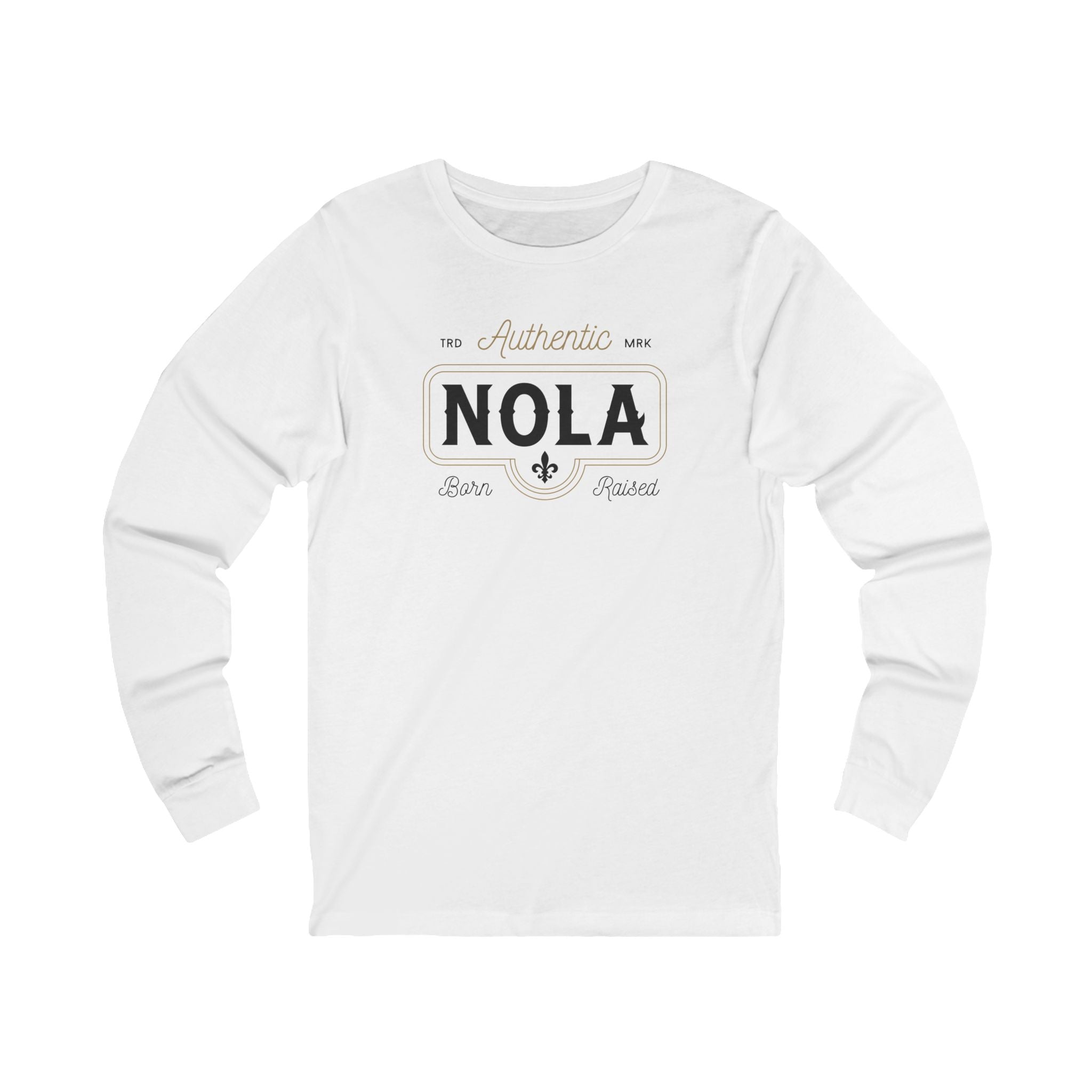 This Authentic NOLA Classic Long Sleeve Tee in White exudes a timeless and classic vibe, perfect for those who appreciate New Orleans culture. It is ideal for anyone looking to add a touch of Southern charm to their wardrobe, especially during Mardi Gras or jazz festivals.